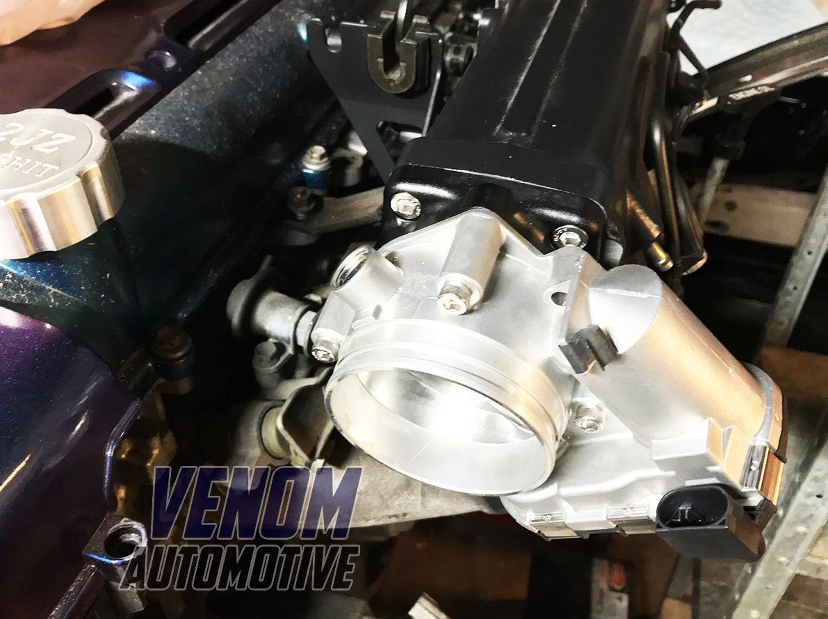 Venom Automotive 2JZ-GTE Non-VVTi Drive By Wire (DBW) Throttle Body Adaptor is design to mount a Bosch 74mm (PN: 0 280 750 474 - Not Included) to the Non-VVTi OEM Intake Manifold to enabling a host of benefits when paired with an aftermarket ECU such as: