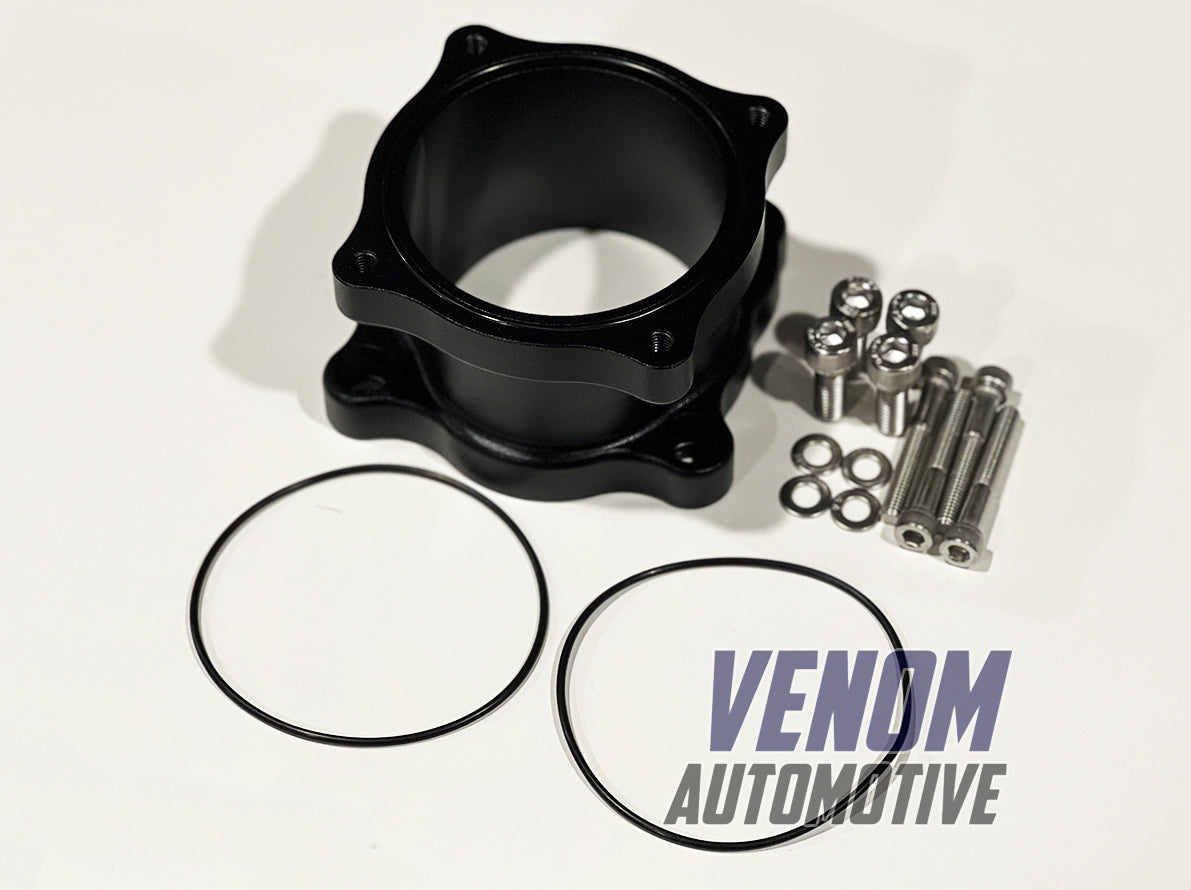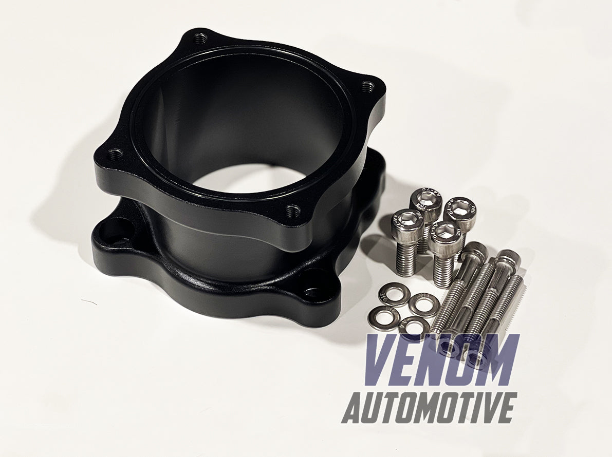 Venom Automotive 2JZ-GTE VVTi Drive By Wire (DBW) Throttle Body Adaptor is designed to mount a Bosch 74mm (PN: 0 280 750 474 - Not Included) to the Non-VVTi OEM Intake Manifold to enable a host of benefits when paired with an aftermarket ECU, such as: