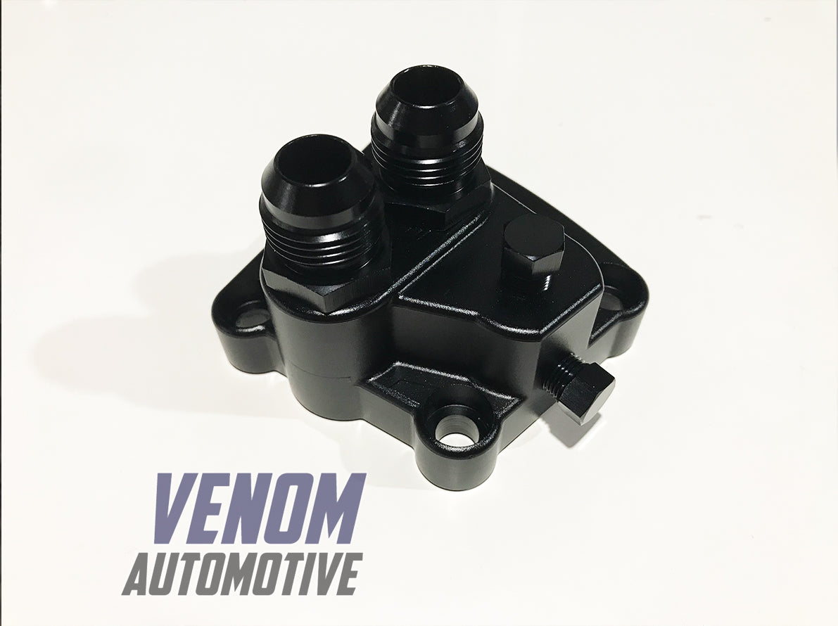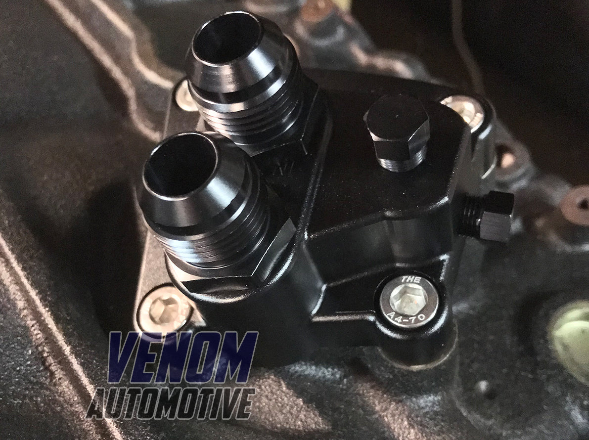 Made to run twin -10AN lines without impeding oil flow. -8AN or smaller can also be fitted via the M20x1.5mm tapped threads.